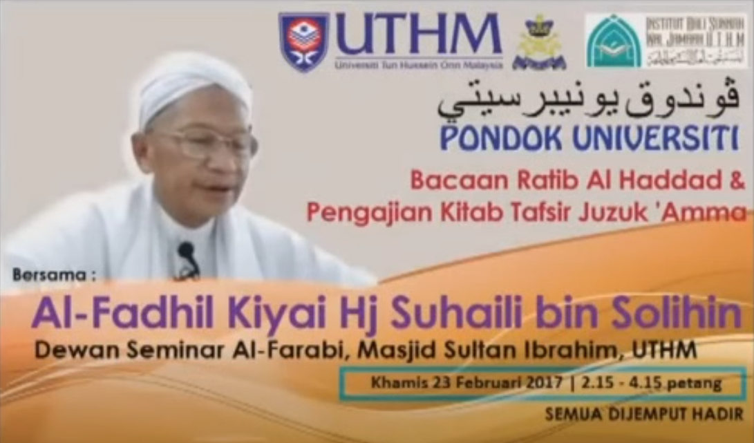 PROGRAM PONDOK UNIVERSITI UTHM: AL FADHIL KIYAI HAJI SUHAILI B SOLIHIN "ORANG YANG PALING BAIK DI ANTARA KALIAN ADALAH SEORANG YANG BELAJAR AL-QUR'AN & MENGAJARKANNYA [HR. BUKHARI No.4639].