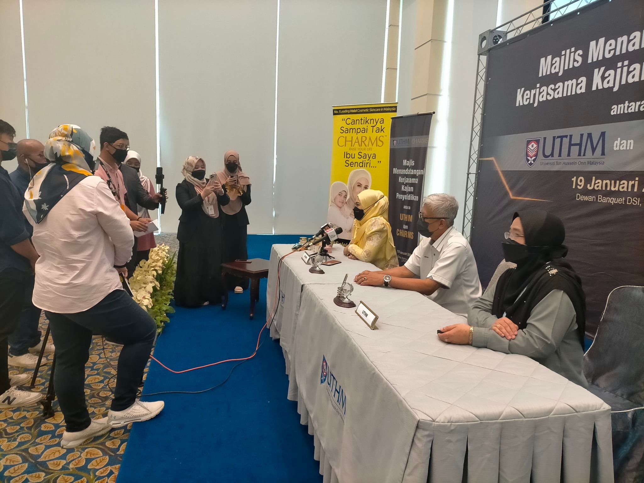 Majlis Menandatangani Kerjasama Penyelidikan iSWAJ DAN CHARMS di Dewan Banquet, Universiti Tun Hussein Onn Malaysia.