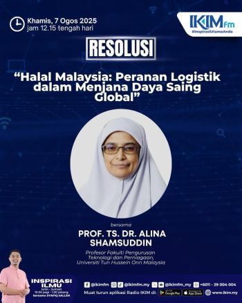 RESOLUSI - "Halal Malaysia : Peranan Logistik Dalam Menjana Daya Saing Global" bersama tetamu Prof. Ts. Dr. Alina binti Shamsudin (Ketua Kumpulan Fokus (FG) dan Penyelidik Utama Fakulti Pengurusan Teknologi Dan Perniagaan, Universiti Tun Hussein Onn Malaysia - UTHM). Rancangan ini dikendalikan oleh penyampai Syafiq Salleh.