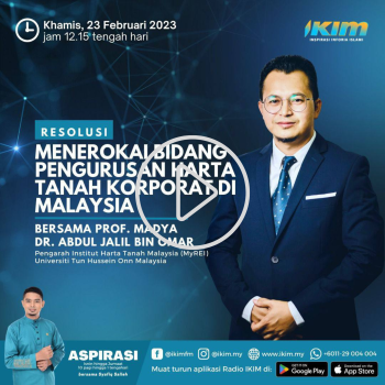 RESOLUSI - Perbincangan tentang "Menerokai Bidang Pengurusan Harta Tanah Korporat" bersama tetamu Prof. Madya Dr. Abdul Jalil Bin Omar (Pengarah Institut Harta Tanah Malaysia MyREI, Universiti Tun Hussein Onn Malaysia - UTHM). Rancangan ini dikendalikan oleh penyampai Syafiq Salleh.