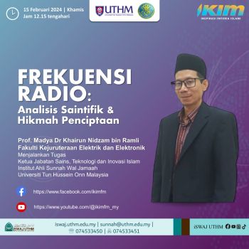 RESOLUSI - "Frekuensi Radio : Analisis Sainstifik & Hikmah Penciptaan" bersama tetamu Prof. Madya Dr Khairun Nidzam bin Ramli (Ketua Jabatan Sains, Teknologi dan Inovasi Islam, Universiti Tun Hussein Onn Malaysia - UTHM). Rancangan ini dikendalikan oleh penyampai Syafiq Salleh.